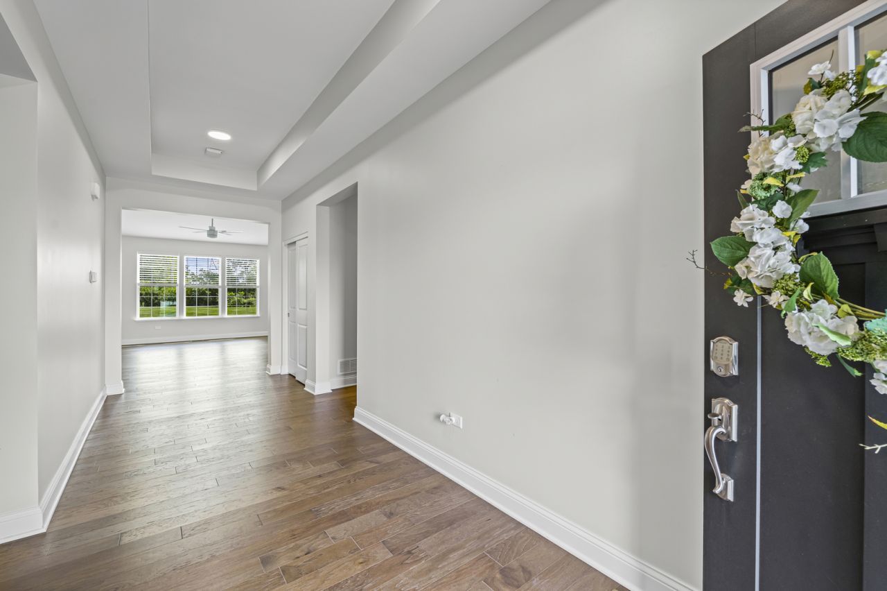 Why wait for a new build that will take months, when this like new home is ready to move in now in a beautiful established 55+ community! HOA dues include all grass lawncare and snow removal up to your front door. Whether you are a seasoned professional looking for a low maintenance lifestyle or a retiree looking for a great established 55+ community to be a part of, this home is for you! Nestled on the largest lot, located in Andare at Woodlore Estates, a very private back yard for outdoor fun, relaxation and enjoyment. This 5 year new home was built with the Lennar Designer Select Upgrade Package! Freshly and Professionally painted interior May 2024. All white custom blinds through out the house. Brand NEW carpet in all 3 bedrooms. The gourmet kitchen offers white Aristocrat cabinetry and large island with quartz counter topping. The 2100 square foot basement is ready for your future expansion, there is a rough-in for a bathroom. The Andare Clubhouse features a meeting room, fitness center, large great room, outdoor patio featuring a fire pit, boccie ball, pickle courts, walking paths and the picnic pavilion. Home is located near healthcare facilities, METRA and shopping. Just a great retirement home for you!