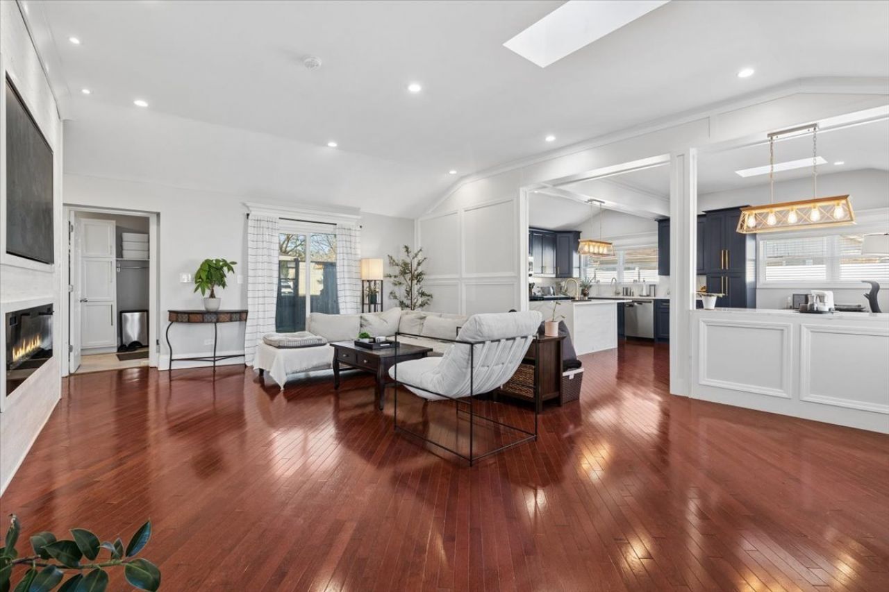 Welcome to 1370 Northmoor Ct, a beautifully renovated split-level home on a quiet Northbrook cul-de-sac. The vaulted family room is filled with natural light from skylights, features a cozy fireplace, and a picture-frame style TV mount. The updated kitchen offers quartz countertops, stainless steel appliances, and ample storage, ideal for everyday living and entertaining. Recent updates include a modern washer and dryer. The garage features a new epoxy floor, and the large concrete driveway provides generous parking. Outside, enjoy a fenced yard and spacious patio perfect for relaxing or hosting guests. Conveniently located near shopping, dining, parks, and within the sought-after Glenbrook North High School district.