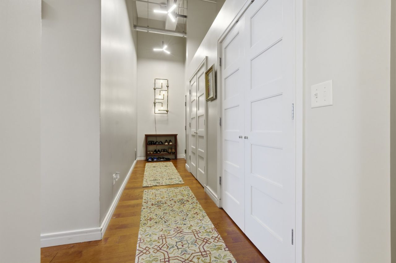 Welcome to elevated downtown living at the iconic Ensenberger Building. This stunning 2 bedroom, 2 full bathroom condo blends historic character with high-end modern finishes in a way that truly stands out. From the moment you walk in, you are greeted by dramatic 17 foot ceilings and soaring west-facing windows that flood the living space with natural light and deliver some of the best sunset views in Bloomington. The open layout feels both spacious and inviting, highlighted by rich hardwood floors, granite countertops, and thoughtfully selected upscale fixtures throughout. The kitchen flows seamlessly into the main living area, perfect for entertaining, while the lofted office space above adds a unique and functional flex area for work or creativity. Both bedrooms are generously sized, and the two full bathrooms offer comfort and convenience for everyday living or guests. Beyond the unit, the Ensenberger lifestyle continues with access to a private workout room, a reservable entertaining space for gatherings, additional storage, and a gated north side parking space. If you have been waiting for a true downtown showpiece with character, convenience, and style, this is it.
