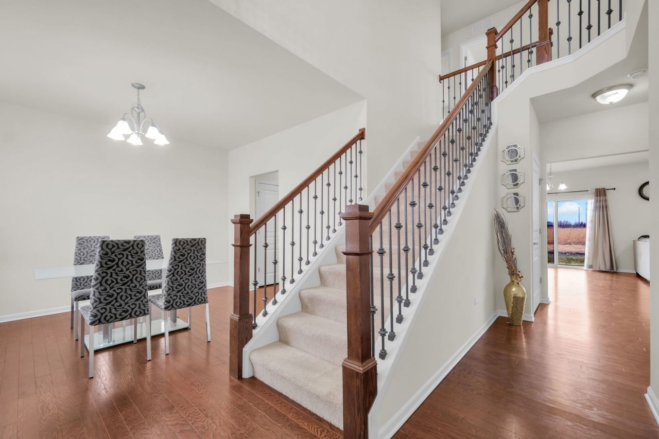 Light, bright, open, and airy perfectly describe this exceptional 4-bedroom, 2.5-bath semi-custom home, thoughtfully designed with both elegance and functionality in mind. From the moment you enter, you are welcomed by a spacious open-concept floor plan that effortlessly blends modern style with everyday comfort. The heart of the home is the expansive gourmet kitchen, featuring an oversized island ideal for gathering and entertaining, tall white cabinetry, and sleek modern flooring that flows seamlessly through the kitchen, dining area, dining room, and family room. This open layout creates the perfect setting for hosting large gatherings or enjoying relaxed everyday living. Step outside onto the custom-built deck, where you can unwind while enjoying peaceful views of the adjacent walking path and protected natural open space. With no rear neighbors, this private outdoor retreat offers a rare sense of tranquility and an unbeatable backdrop for morning coffee, evening sunsets, or weekend entertaining. The second level is flooded with natural light and offers four generously sized bedrooms, each providing comfort and flexibility. A full guest bathroom serves the secondary bedrooms, while the primary suite is a true sanctuary. The primary bath features abundant counter space and storage, a separate walk-in shower, and a private water closet, delivering both luxury and convenience. Ideally located near major interstates and shopping, and within walking distance to Wolf Crossing Park, this home offers the perfect balance of privacy, accessibility, and lifestyle convenience. This is the one you've been waiting for-schedule your private showing today and make it yours.