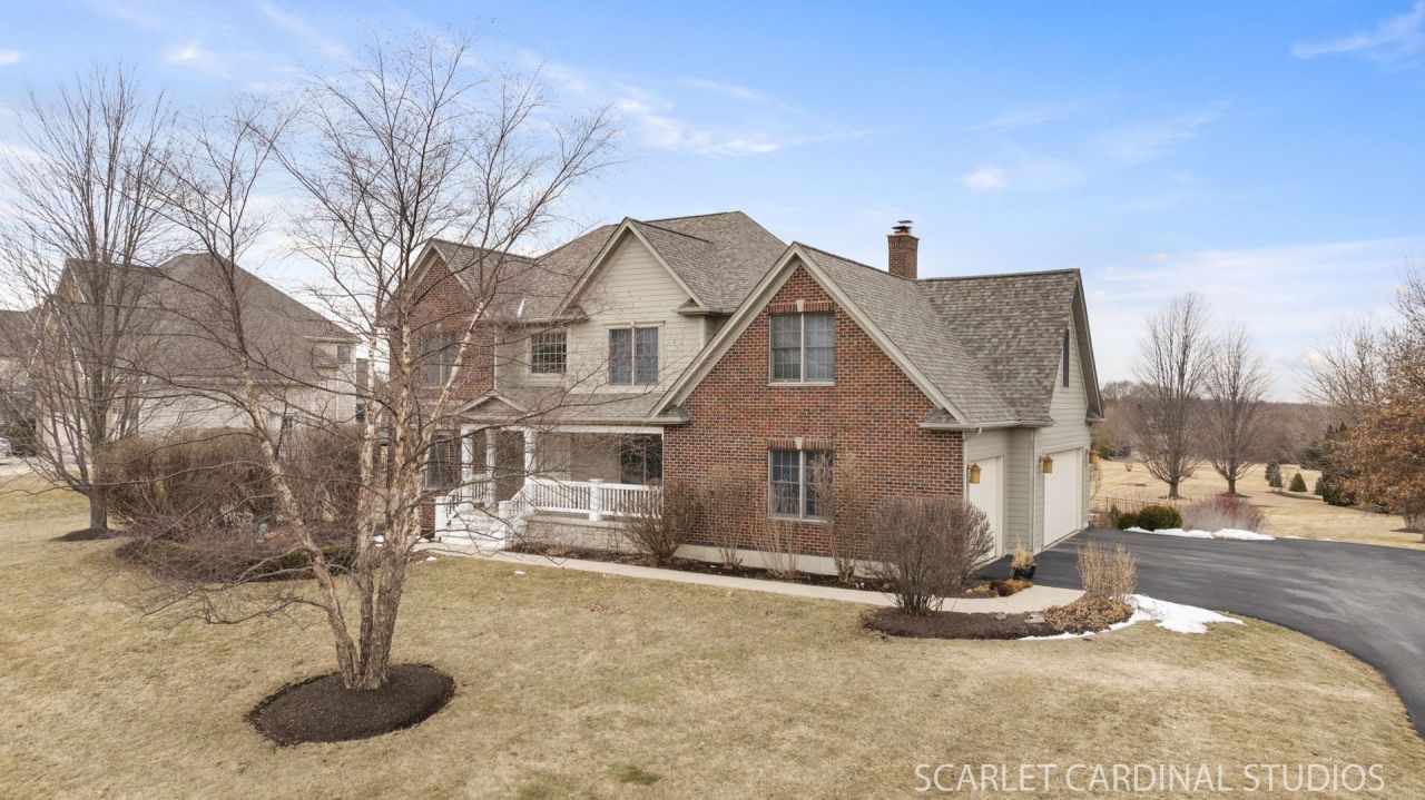 Set on approximately one acre in Yorkville's Fields of Farm Colony subdivision, this expansive five-bedroom, 3.5-bath home offers over 3,700 square feet of living space, a three-car garage, and a walkout basement. A bright foyer opens to the living room and spacious dining room featuring updated designer lighting and a butler's pantry connecting to the kitchen. The kitchen offers generous workspace, an eating area, and additional Anthropologie lighting while overlooking the backyard, walking paths, and surrounding natural landscape. The sunken family room features a fireplace and new carpeting (2025). The primary suite includes a large sitting area, private composite balcony with expansive views, a walk-in closet, and a bathroom with separate tub and multi-head walk-in shower. Four additional bedrooms provide comfortable space and storage. The walkout basement includes a fireplace box and bathroom rough-in, offering the opportunity for additional finished living space. Outdoor features include a two-story composite deck and a saltwater pool with an electric safety cover. Exterior improvements include new siding and roof completed in late 2025.